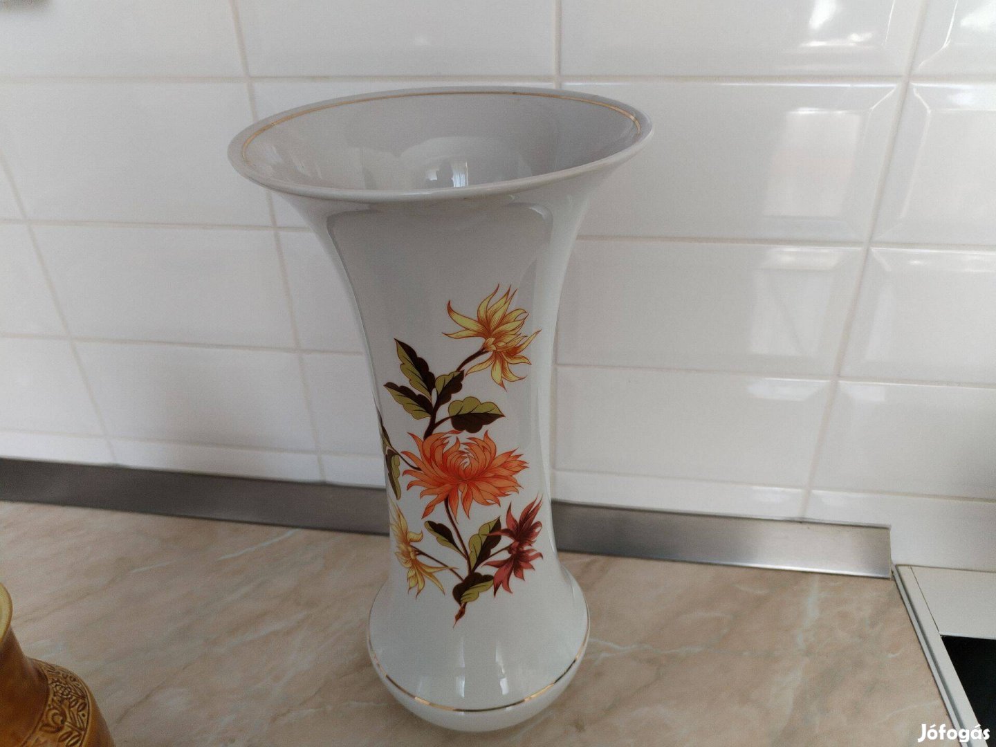 Régi aranyszegélyes Virágmintás Hollóházi váza 38 cm magas szép egyedi db