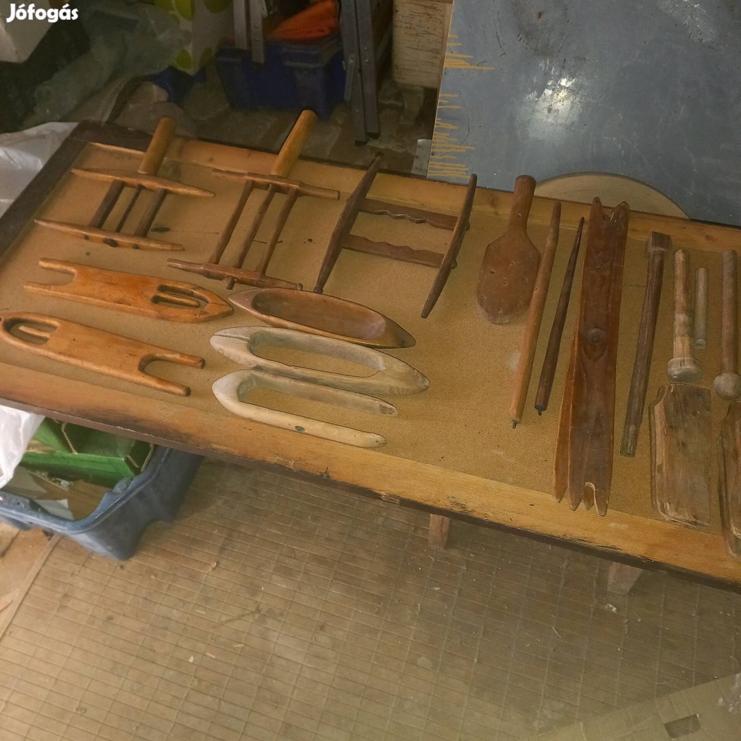 Régi, népi kézműves eszközök vagy alkatrészeik.