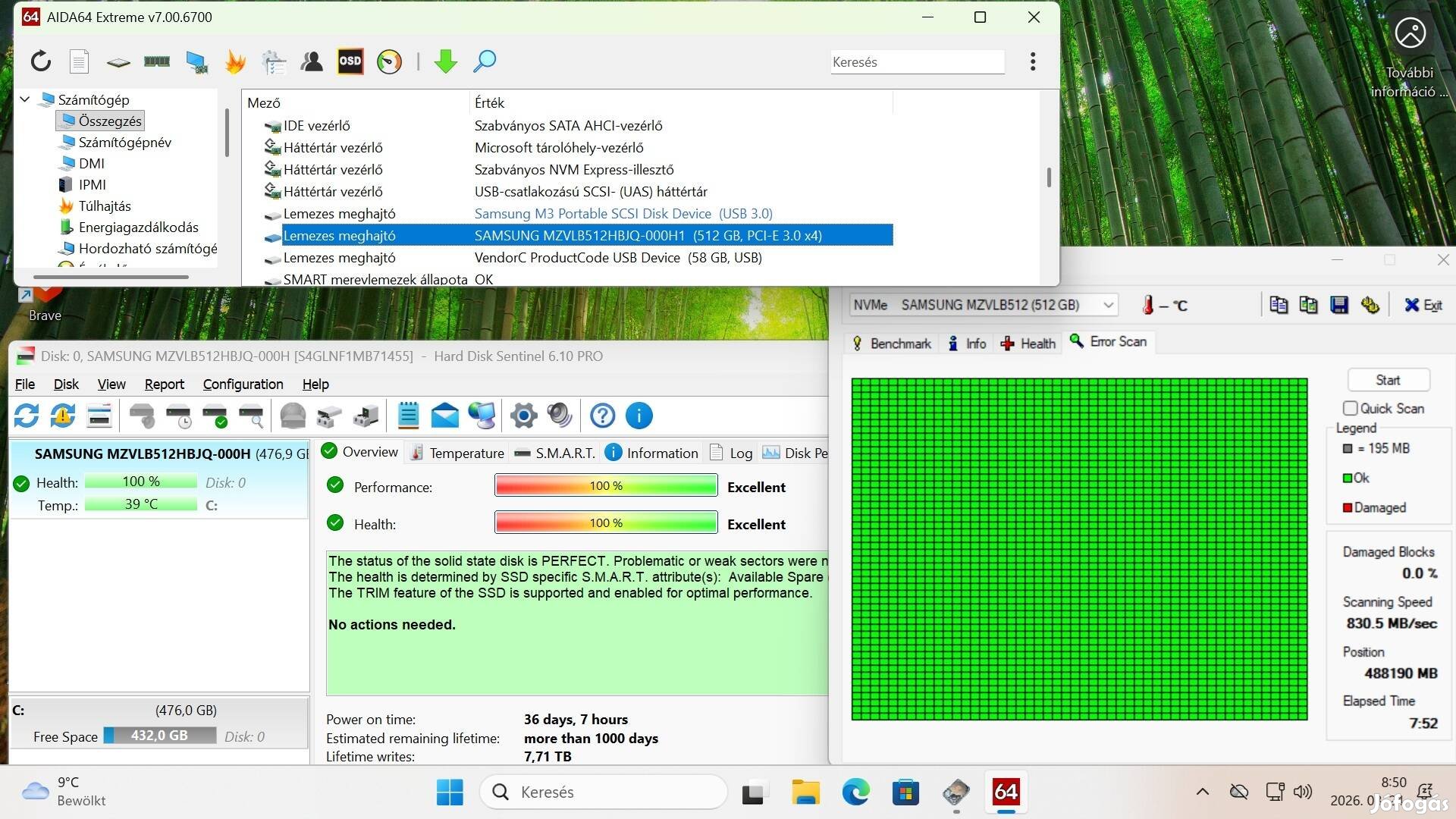Vezérlő: Samsung Phoenix vezérlő (saját DRAM cache-el, nem lassul be másoláskor)