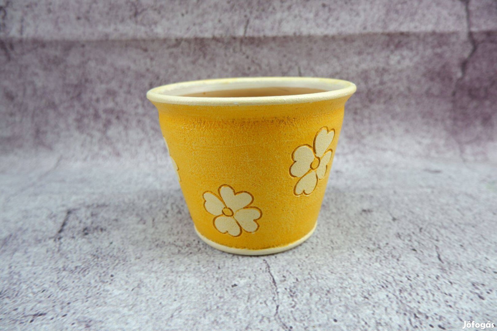 Sárga alapon fehér virág mintás kaspó 12cm Ajándékozható is!