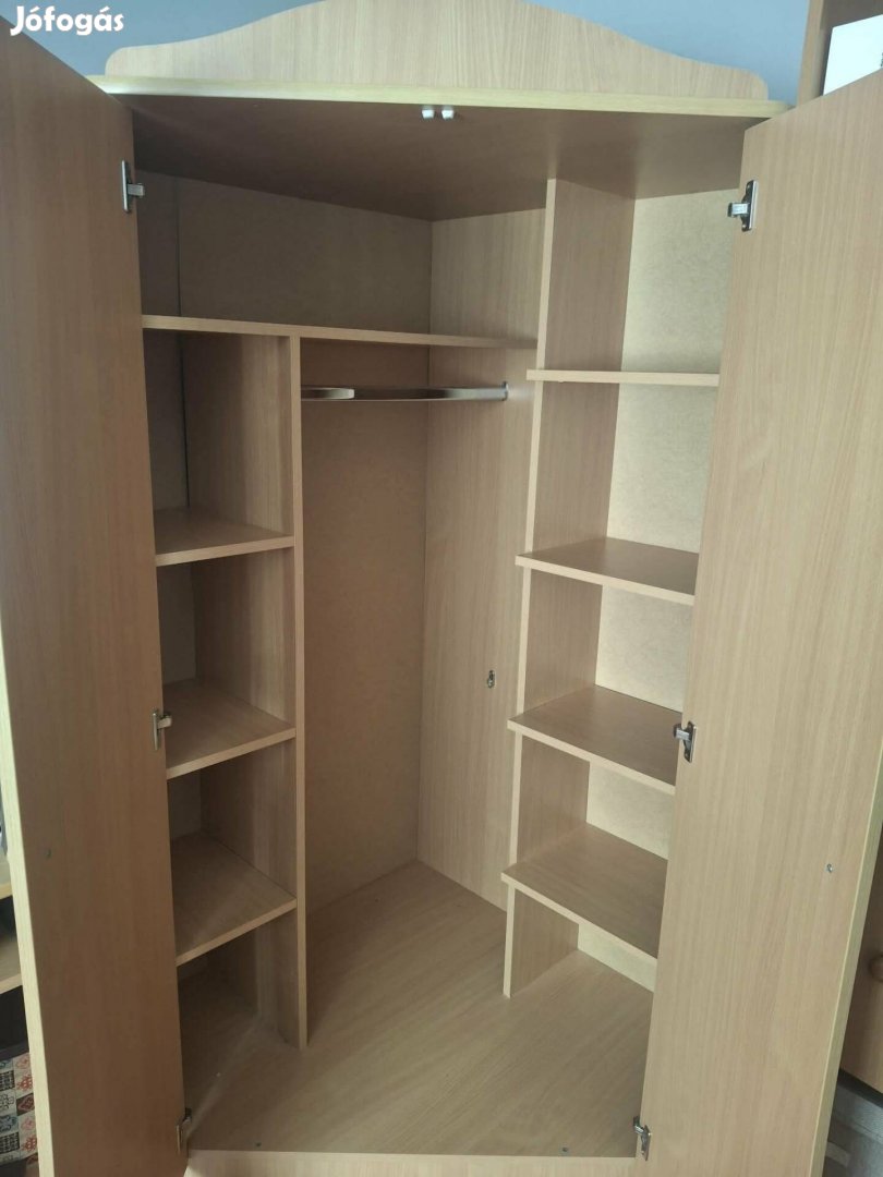 Sarokszekrény, bükk színben, hibátlan állapotban, lapra szerelve, ingyen elvihető.
