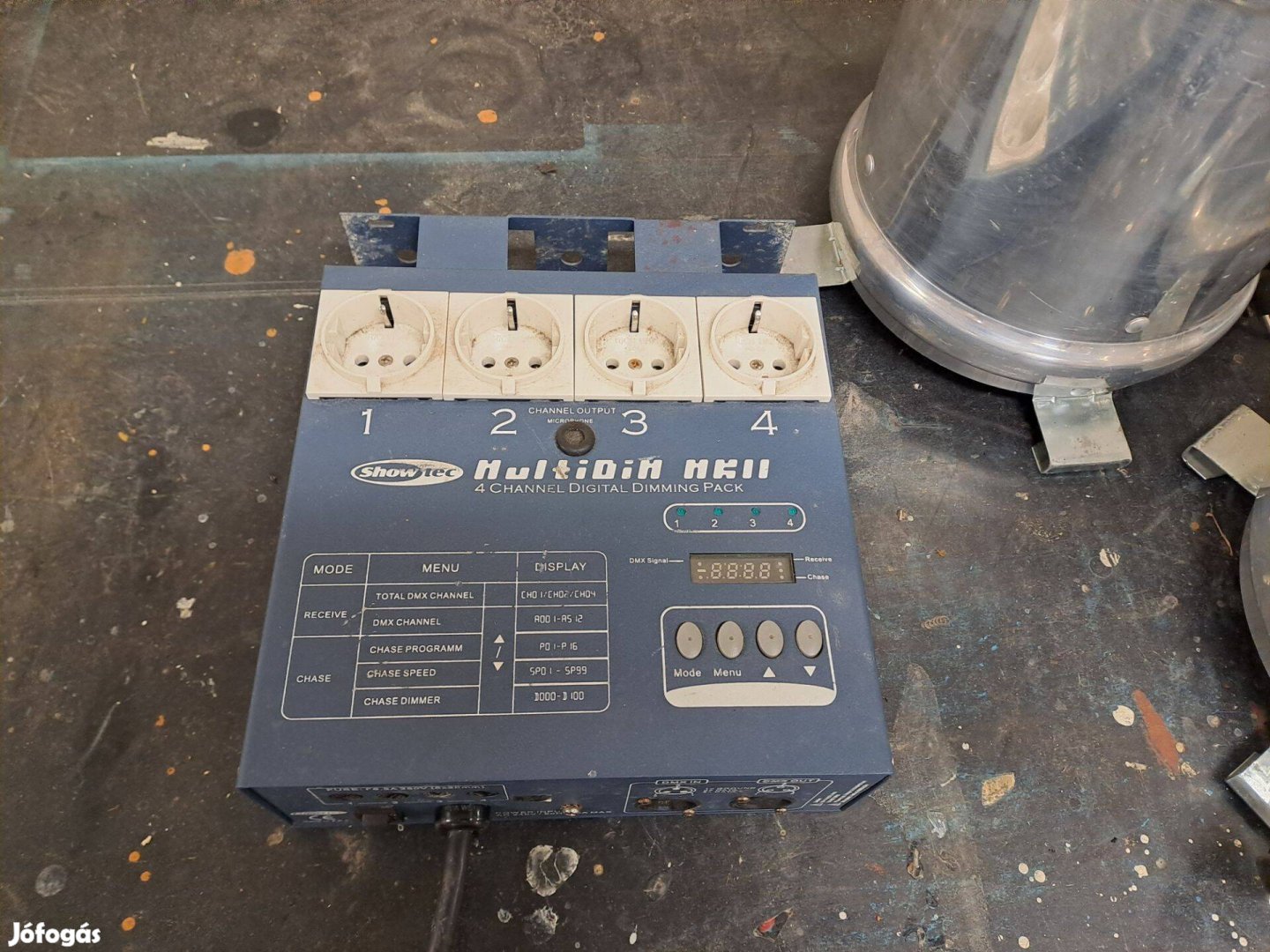 Eladó a fotón látható 4 csatornás kis dimmer. DMX módban is megy és vannak saját programok, amiket futtat. Csatornánként 1200 Wattal terhelhető. Ha szükséges, akkor tudok hozzá adni par 64 hosszú chrom lámpatesteket 500W-os betéttel, színkeret nélkül.
