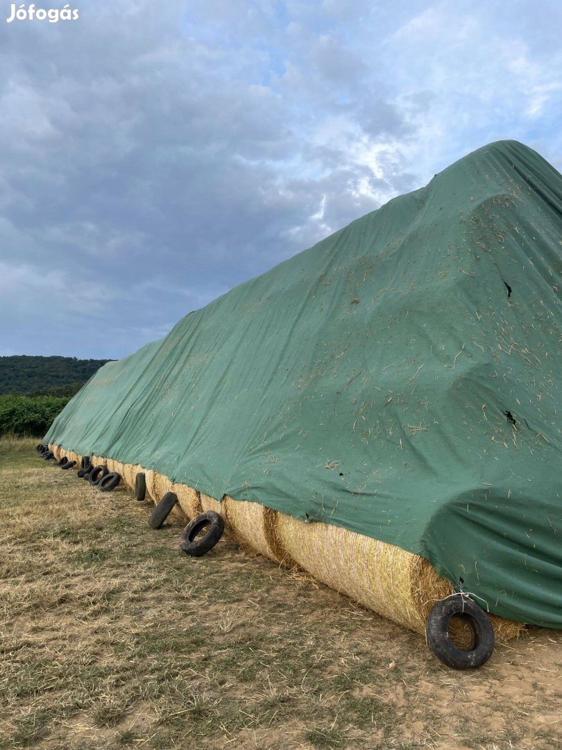 Eladó ponyvával takart 125-ös búza szalmabála.