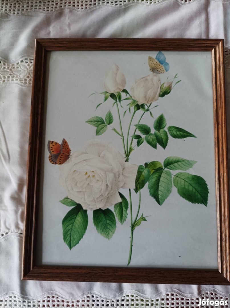 Szép, virágos, pillangós kép keretezve, 33*26 cm