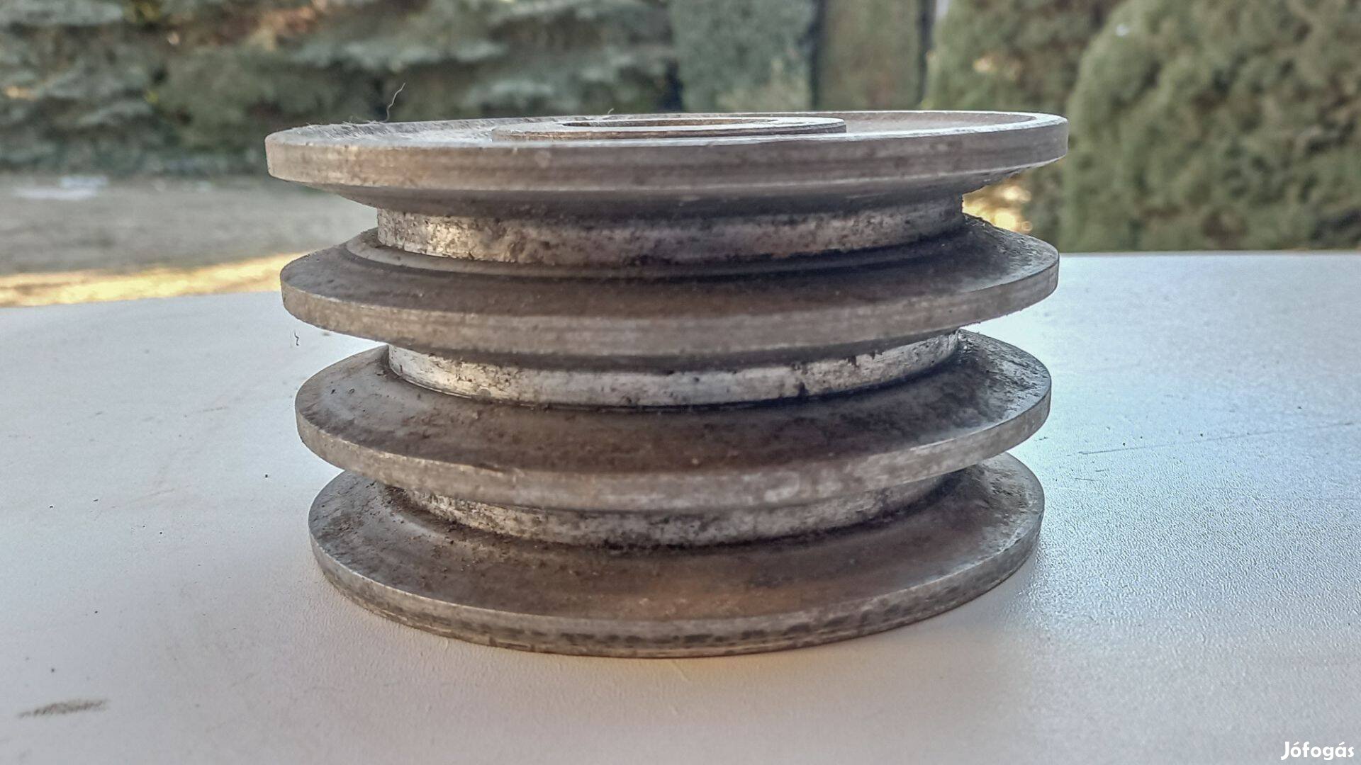 3 pályás alu szíjtárcsa, átmérő 140 mm, szélesség 75 mm, tengely furat 38 mm, ékpálya 11 mm, szíjméret 17 mm. Postával együtt MPL csomagautomatába 15000 Ft.