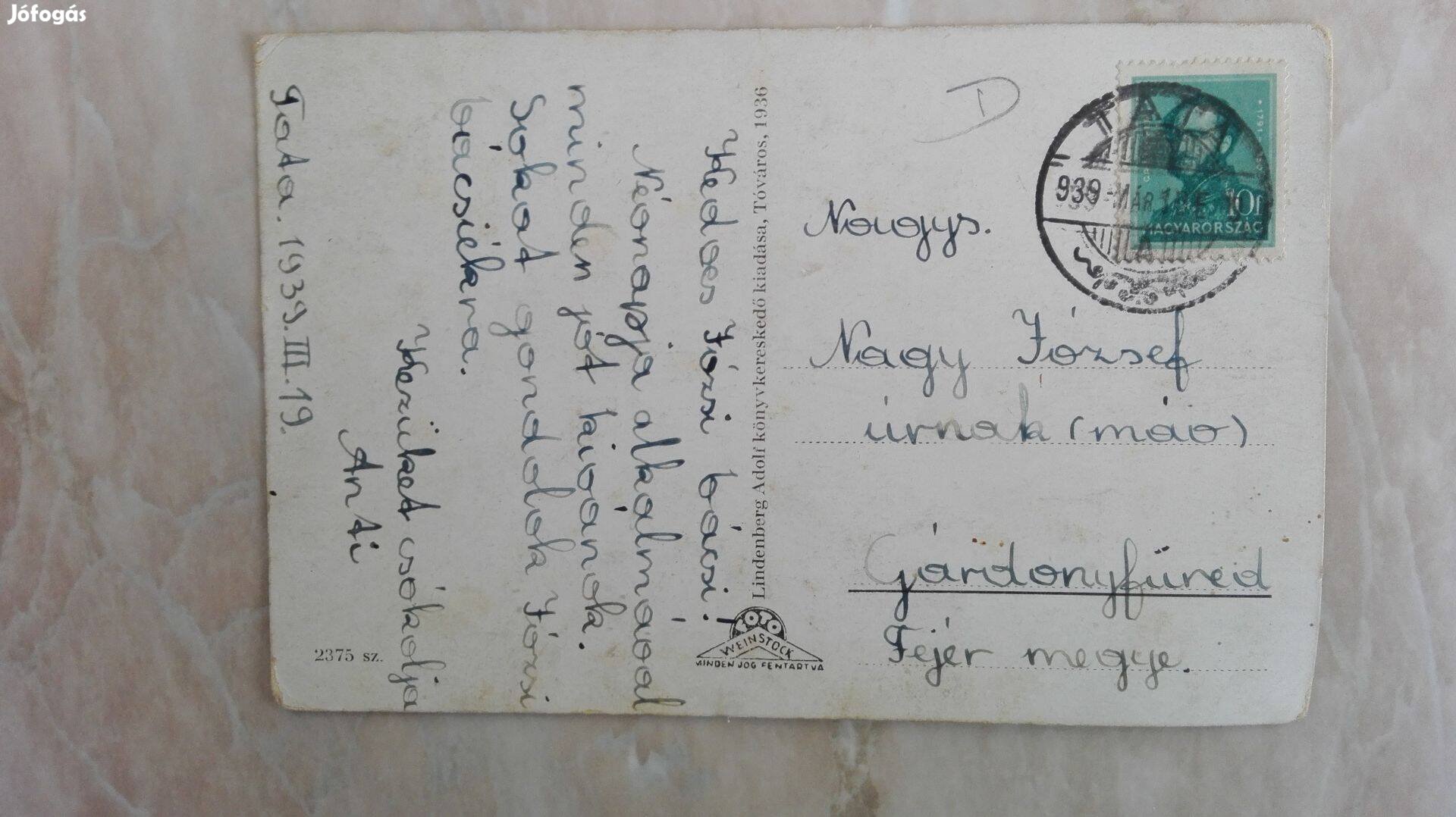 Tatai ritka képeslap 1939-es szép