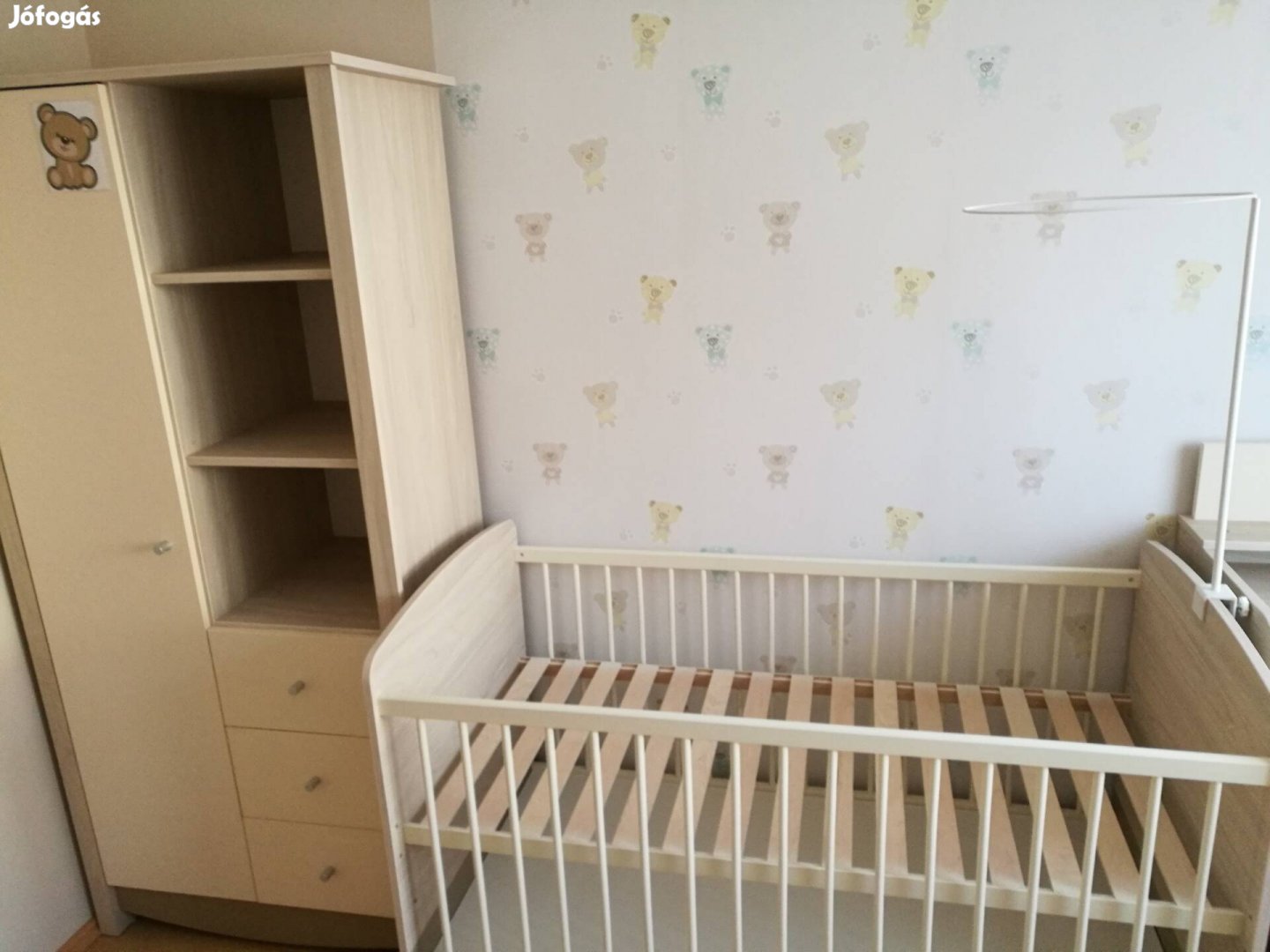 Eladó jó állapotú Teddy gyerekbútor. 1 db 70x140 ágy, mely ifjúsági ággyá is alakítható. 1db gardrób szekrény, 1 db pelenkázó komód, 2 db félmagas szekrény, 1 db kis pakolós szekrény, 1 db polc. Ajándék hozzá illő Teddy padló szőnyeg és kókusz betétes matrac. Szállításban tudok segíteni.