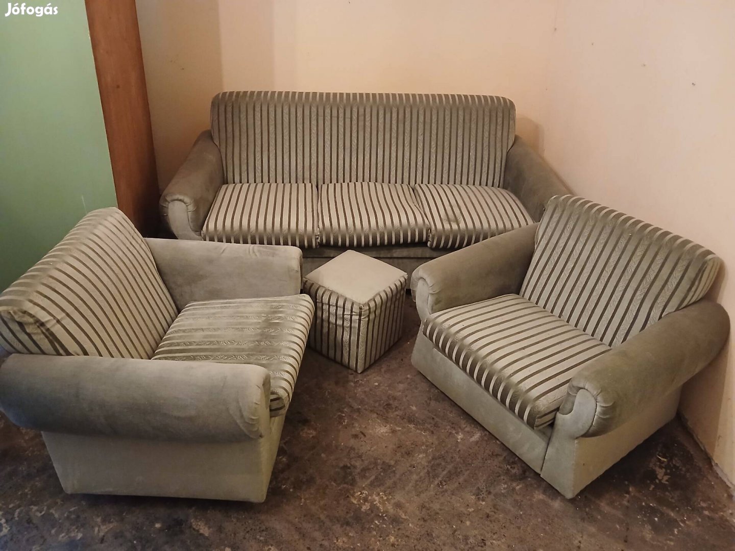 Ággyá nyitható kanapé és két fotelből álló ülögarnítúra, szép állapotban eladó.