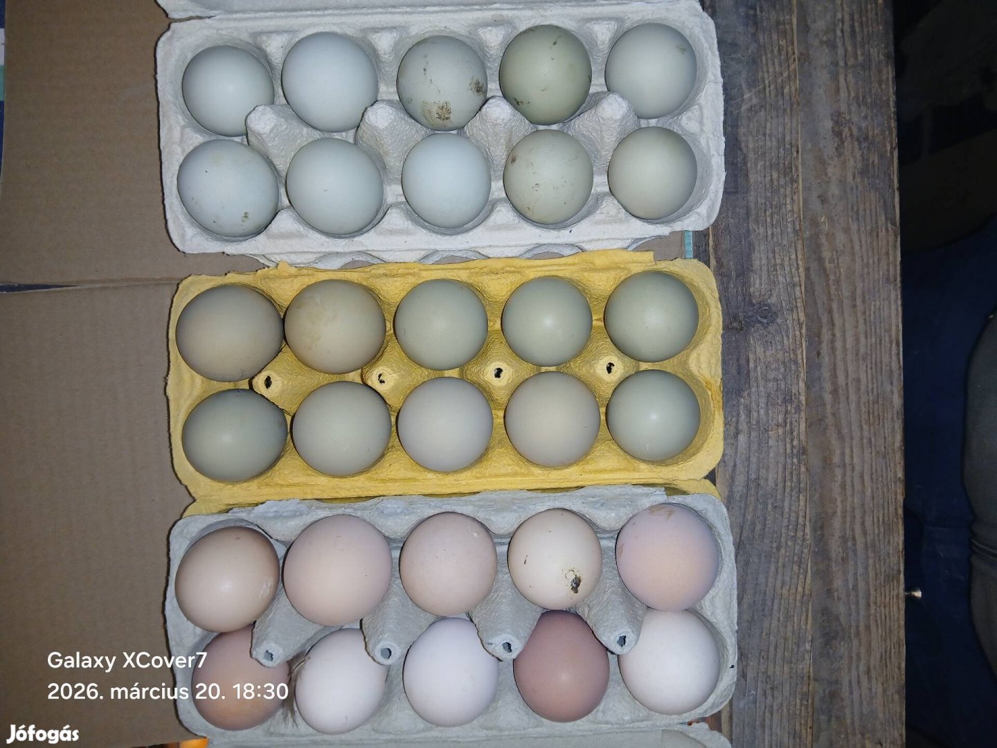 Tojás vegyes állományból eladó! A színesek olive egger, legbar és araucana tyúkoktol húsvétra ,vagy keltetésre is.Csak személyes átvétel!
