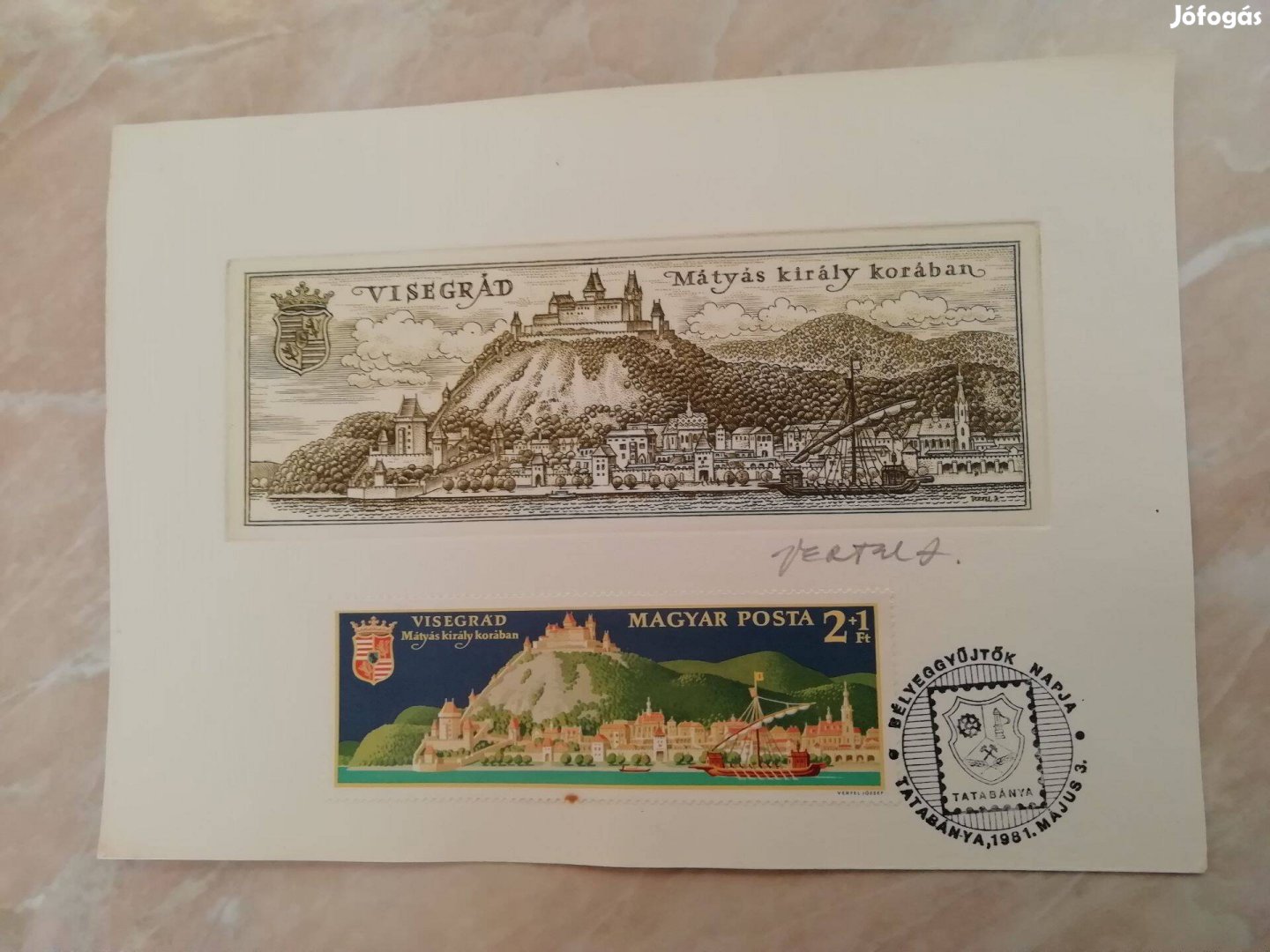 Vertel József által dedikált 1981-es "Visegrád" Rézkarc ritka db