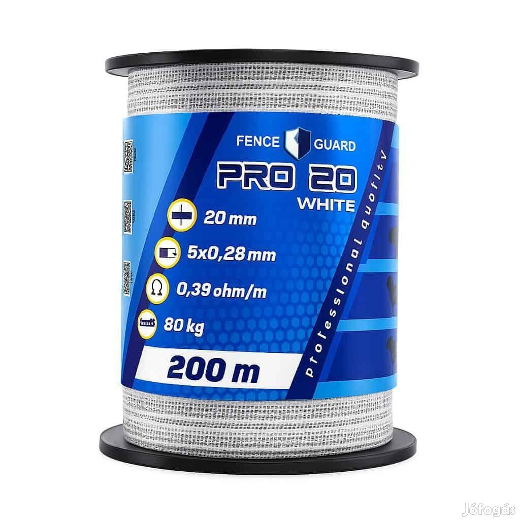 Villanypásztor szalag 200m 80Kg 0,39 /m 20mm Fence Guard Pro20 5 vezetőszál fehér
