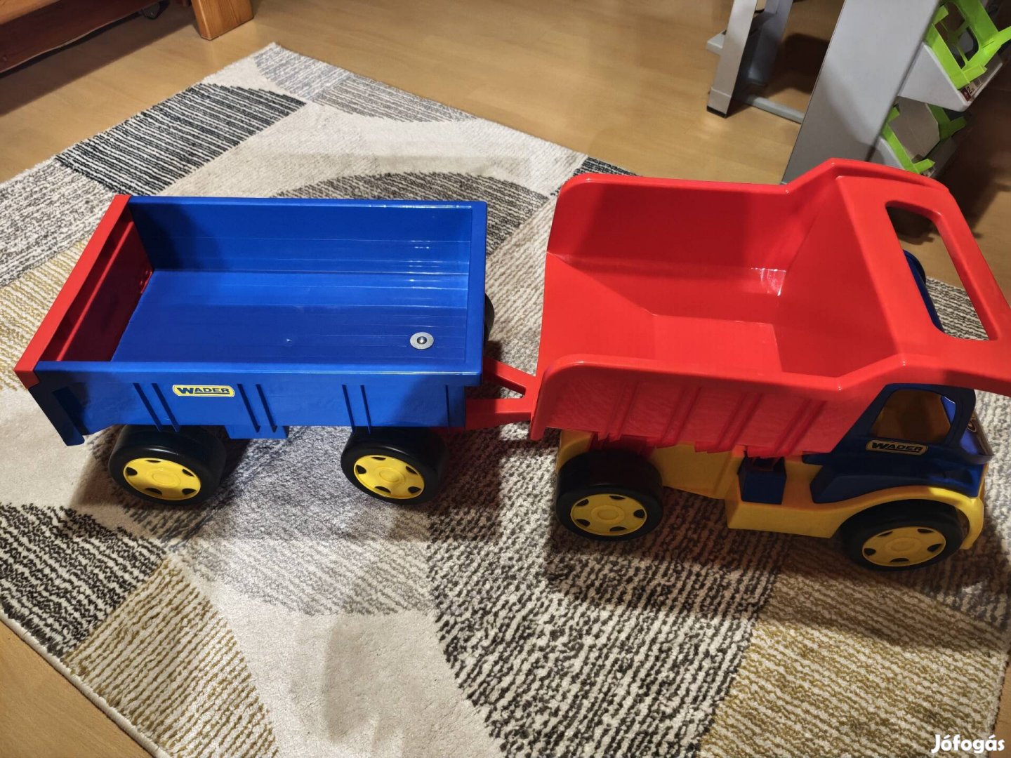 Wader Óriás Dömper Kézikocsival - 107 cm Ismerd meg a Wader Óriás Dömper szettet, amely minden kis építész álmát valóra váltja! Ez a hatalmas, 107 cm hosszú járműszett kiváló minőségű anyagokból készült, így garantálja a tartós és megbízható játékélményt minden környezetben.