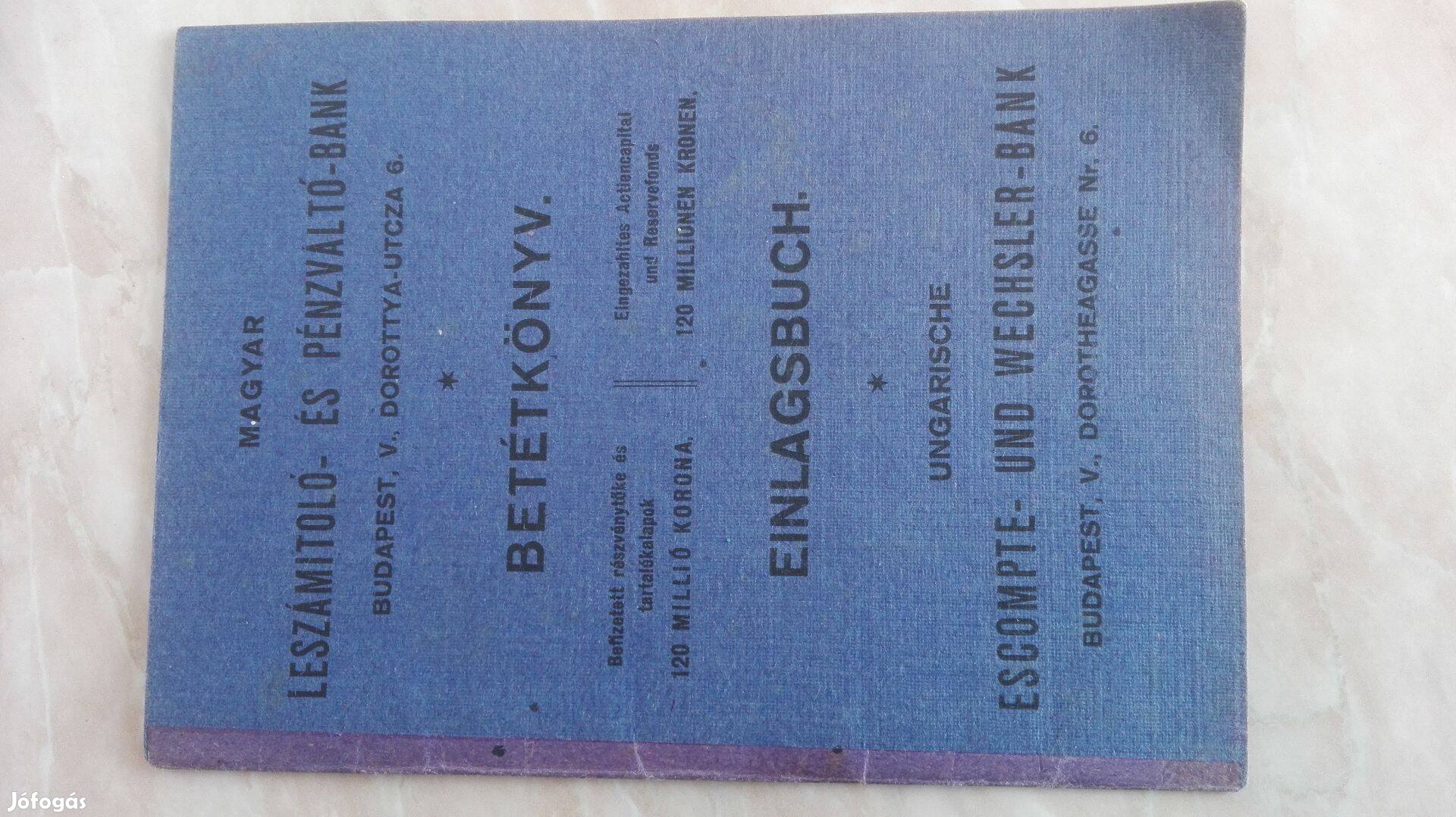 "Leszámitoló és Pénzváltó Bank" Ritka régi betétkönyv