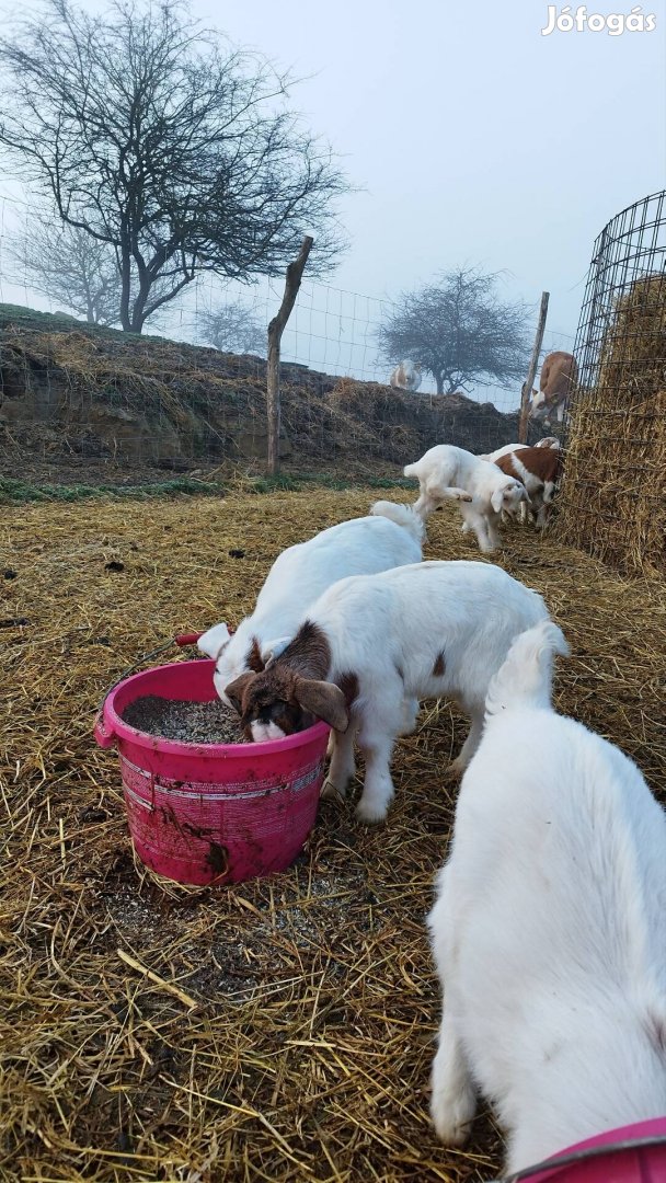 Komárom -Esztergom vármegyében Leanyváron eladó február elején született kecskegidák jól tejelő anyáktól, törzskönyves búr baktól. Szénát, lucernát esznek. Még kb 2-3 hétig tejet még igényelnek. Bakok, gödölyék vegyesen.