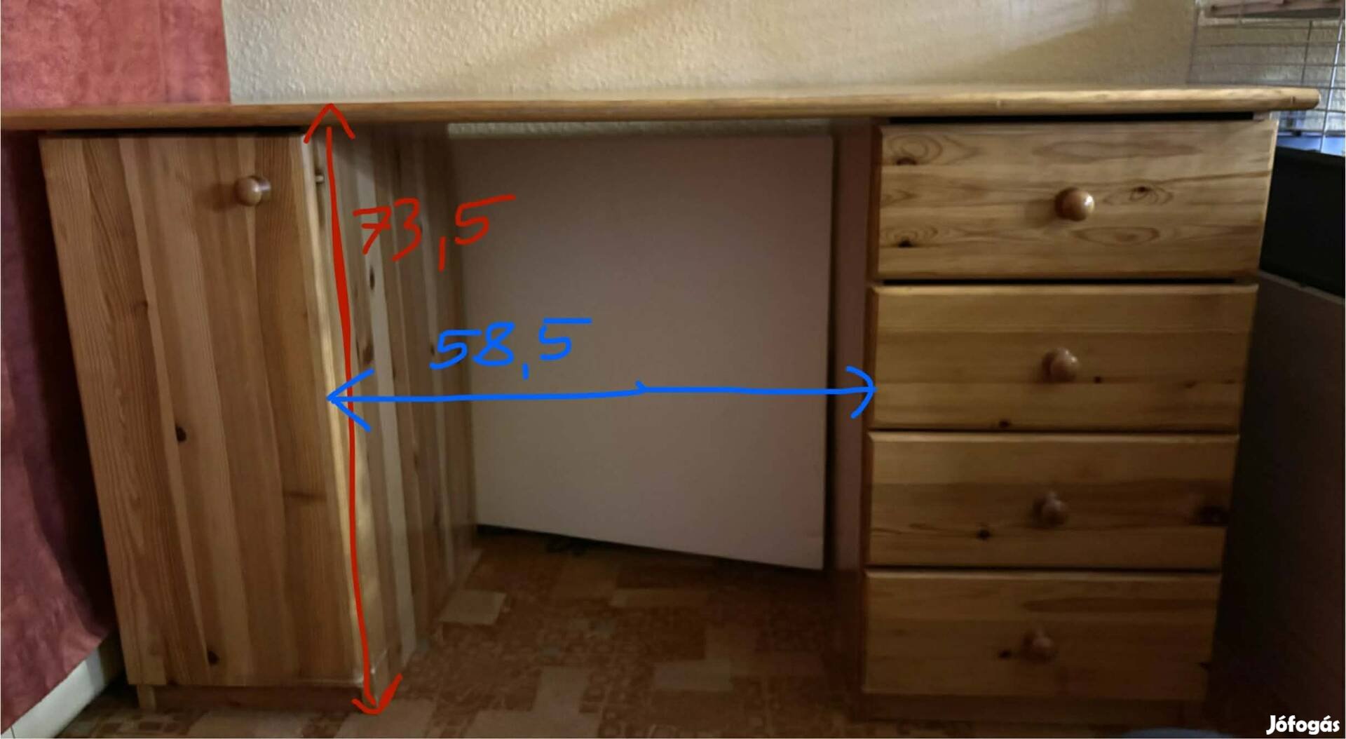 Eladó Lídia fenyő íróasztal, 4 fiókos, jobbos. Helyileg Tatabánya. Szállításban nem tudok segíteni.