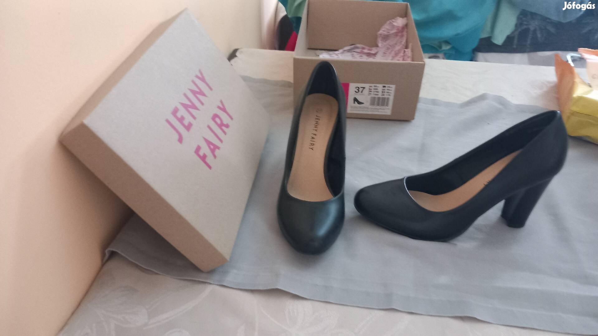 Divatos női 37-es Jenny Fairy márkájú bőrcipő, szinte új, 9 cm sarokkal.