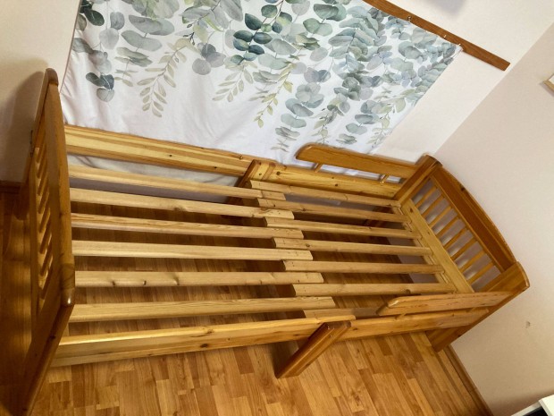 Gyermekágy, ifjúsági ágy leesésgátlóval. 90x200 méretű, fenyő