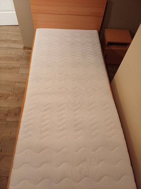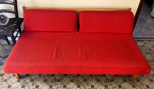 Piros kárpitozott ifjúsági ágy eladó 2 db fotellel