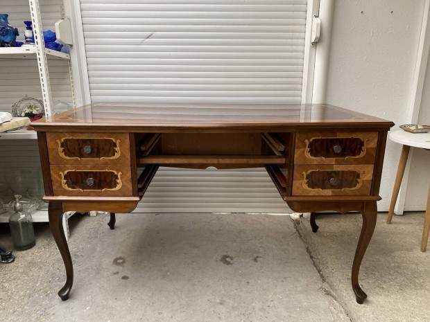 Neobarokk íróasztal 5 fiókos, iüveglappal
