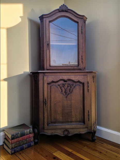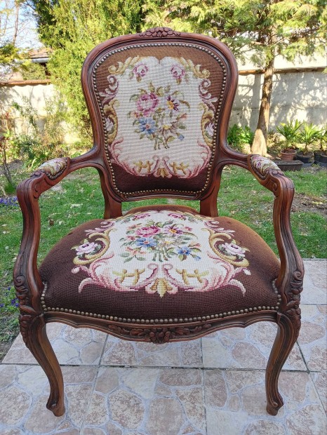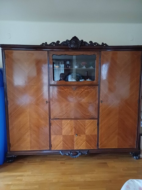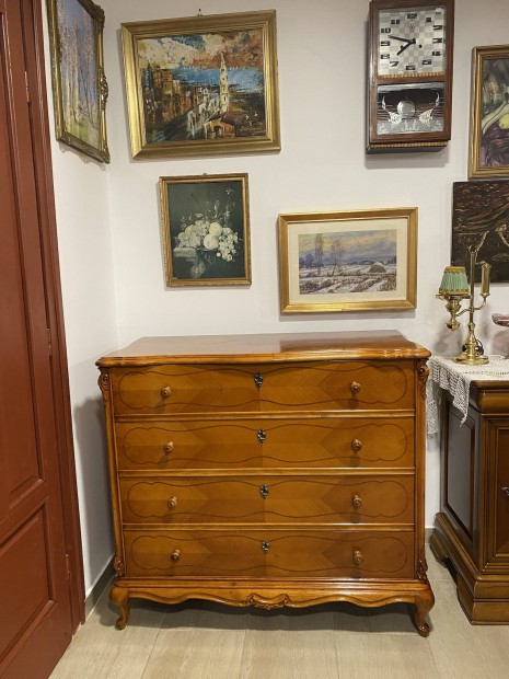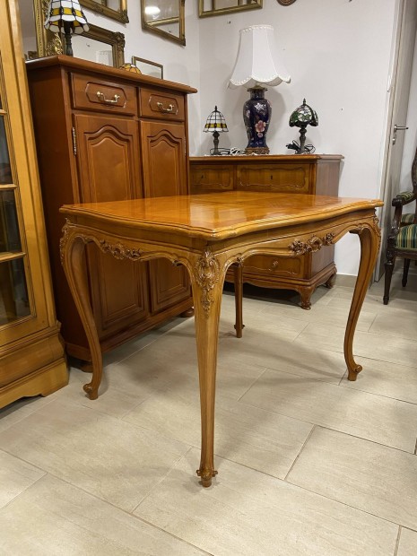 Rusztikus neobarokk jellegű étkező asztal székekkel és tálalószekrén