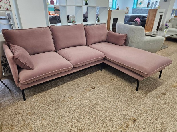Rózsaszín bársony Mömax variálható sarokkanapé