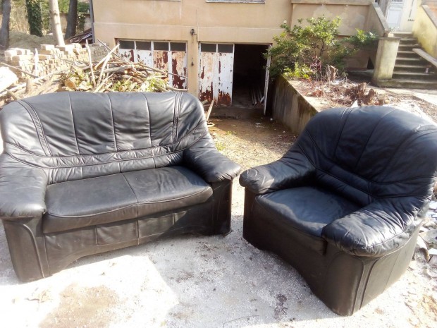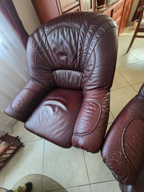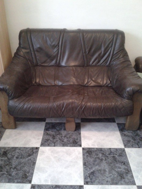Bőr ülőgarnitúra, kanapé és 2db fotel eladó