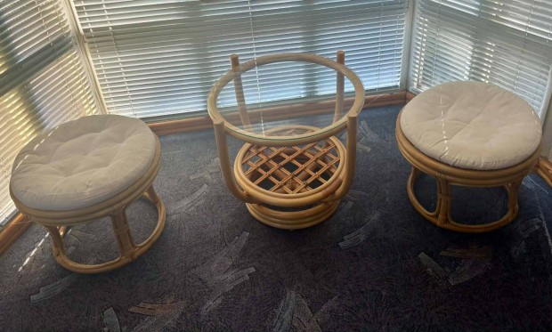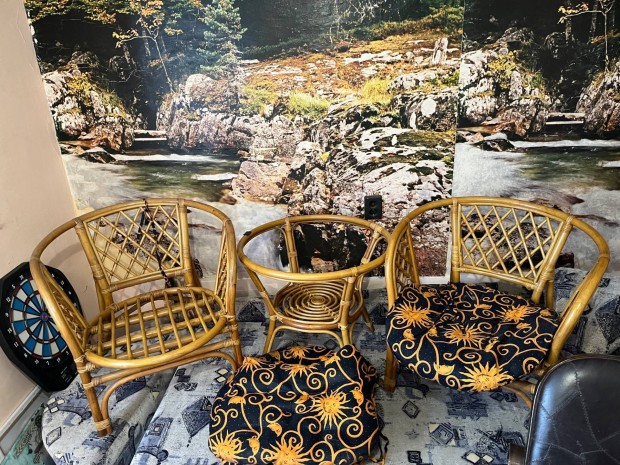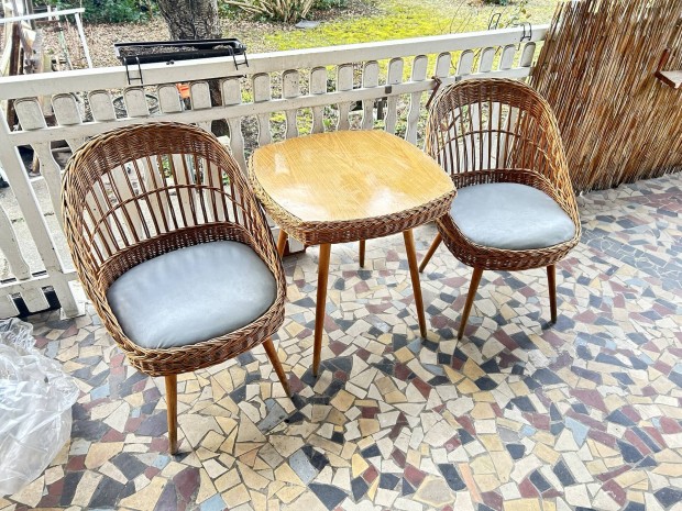 Retro rattan asztal +két szék
