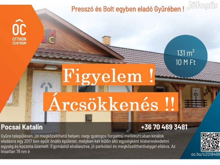Presszó és Bolt egyben eladó Gyürében !