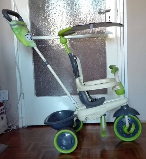 Gyerek tricikli felnőtt kormányzással, napellenzővel