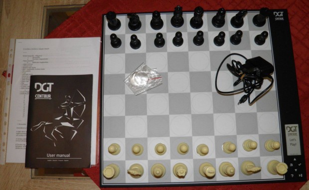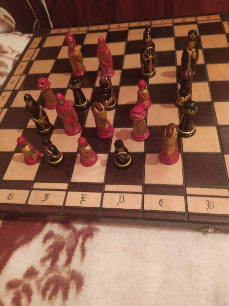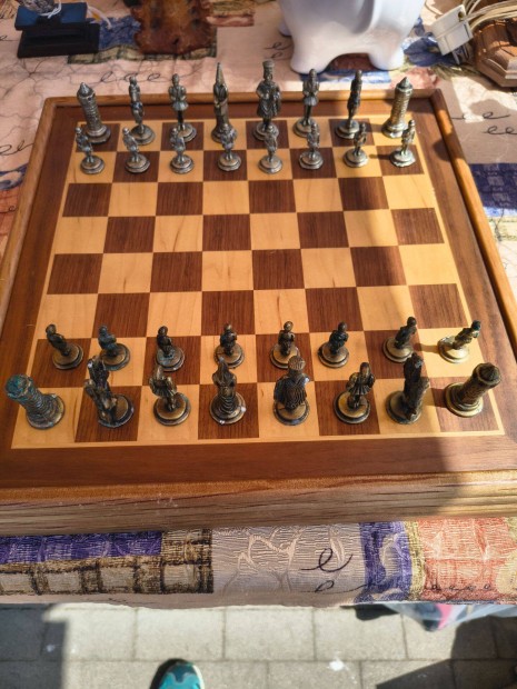 Intarziás sakk tábla, fém figurákkal