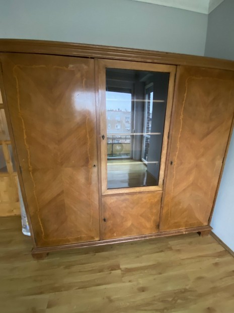 Masszív, régi tömörfa vitrines szekrény / tálaló szép állapotban