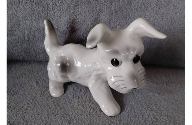 Barna-fehér fekvő porcelán kutya