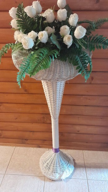 Fonott álló fehér kosár rózsával