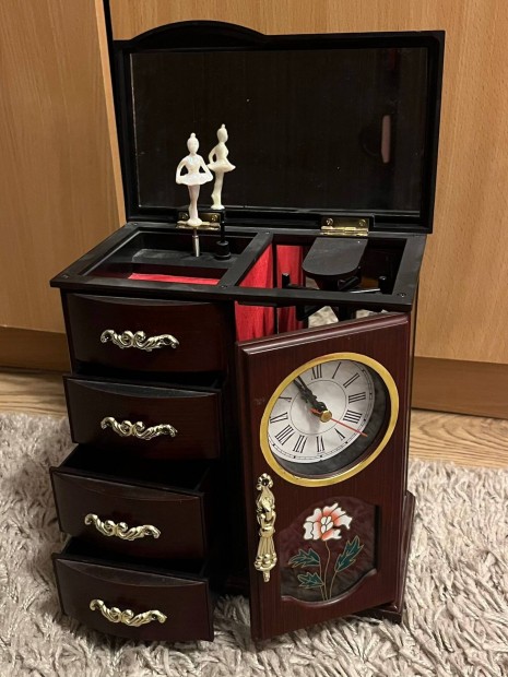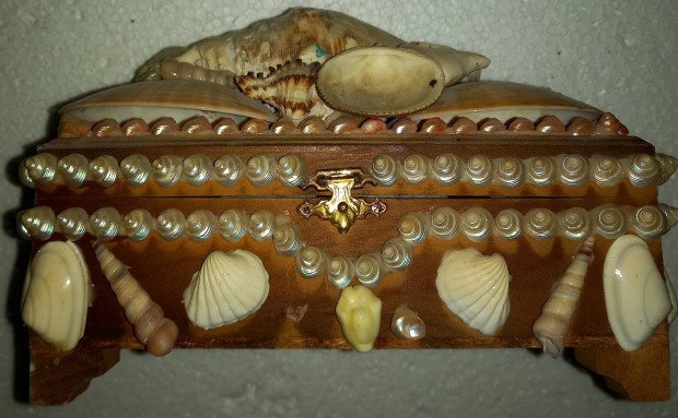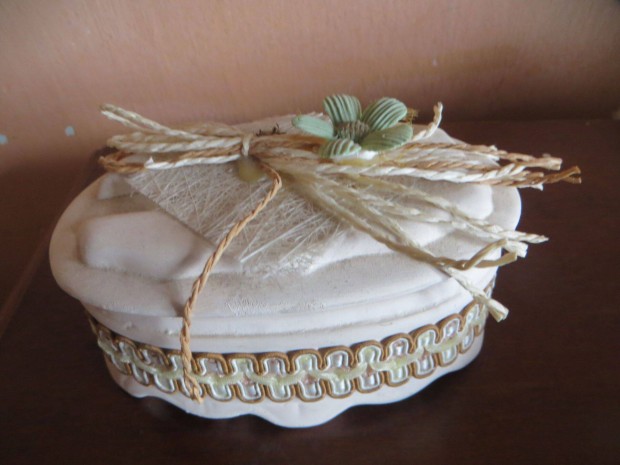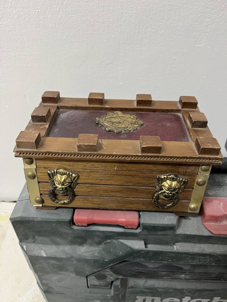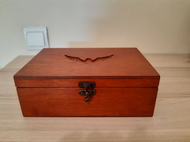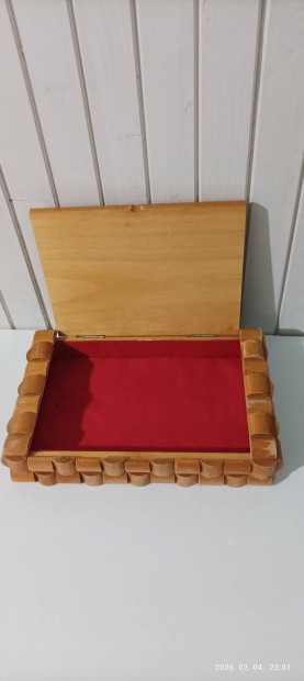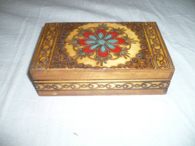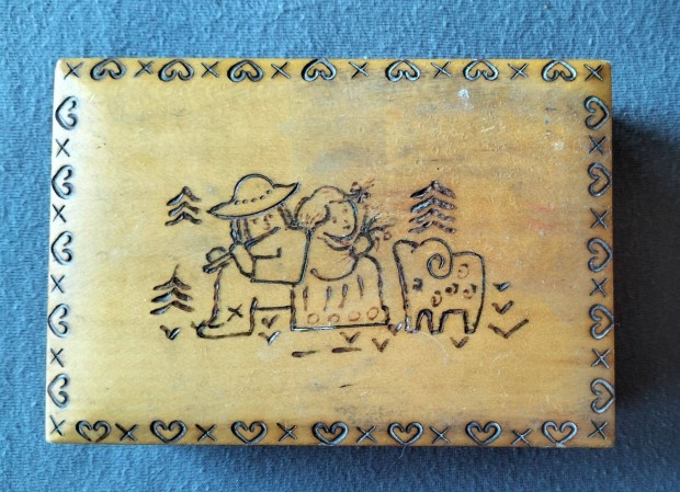 Vintage pirografált ékszerdoboz korának megfelelő állapotban