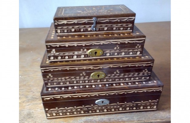 Intarziás, kézműves fa ékszerdoboz keleti stílus
