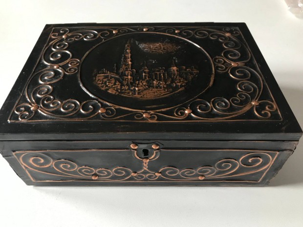 Régi kagylókkal díszített ékszeres doboz 14x6,5x 9 cm 225 gramm