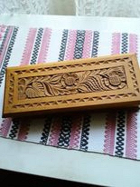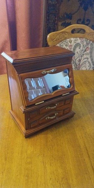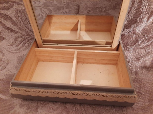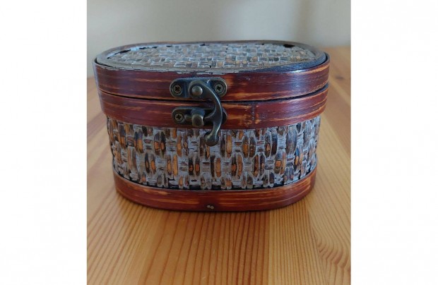 Régi antik kézműves fa bonbonier ékszertartó doboz 1968