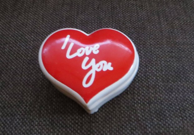 Régi szív alakú mázas kerámia doboz vagy ékszertartó