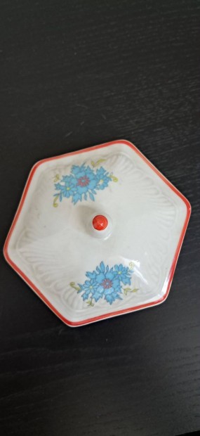 Retró porcelán bonbonier Kék virágmintás ékszertartó doboz