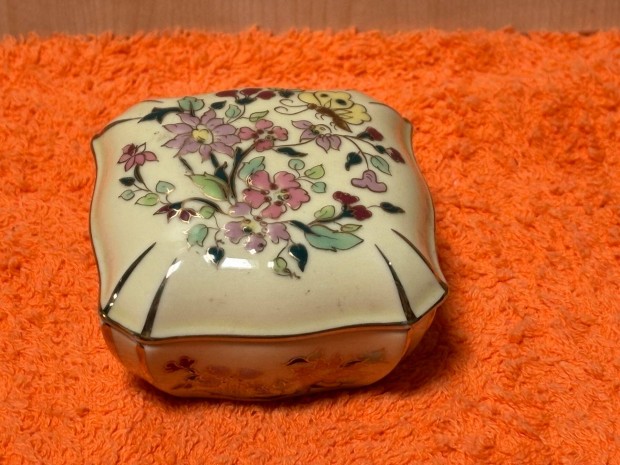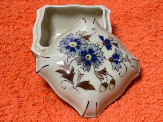 Zsolnay porcelán ékszertartó doboz búzavirág mintával