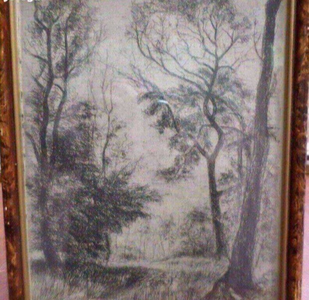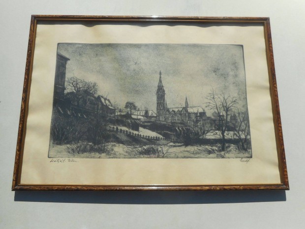 Élesdy István rézkarc kép/Vajdahunyad vára,városliget/