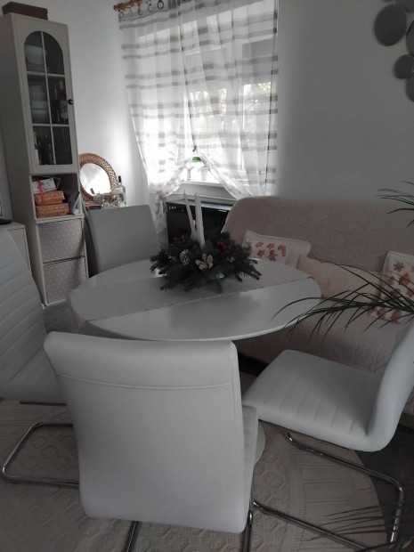 Asztal étkező kerek/ovális 4 db székkel fehér eladó