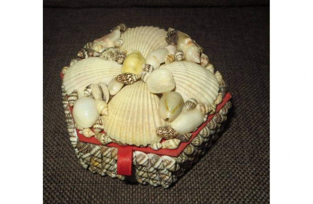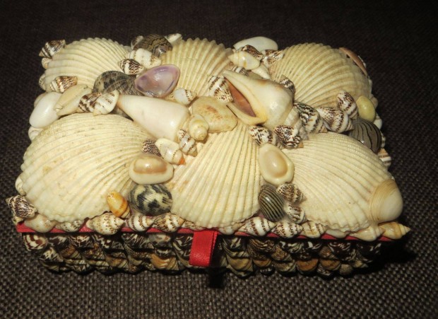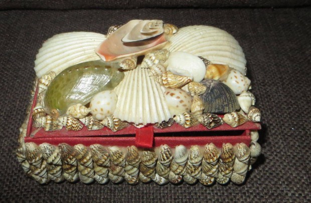 Régi kagylókkal díszített ékszeres doboz 14x6,5x 9 cm 225 gramm