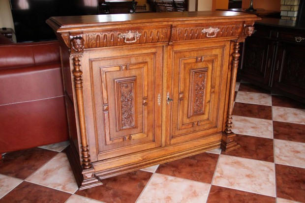 Ónémet dúsan faragott tölgyfa komód
