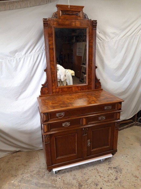 Ónémet faragott tükrös komód, szekrény