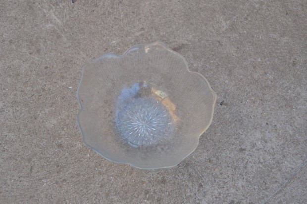 Retro vastag falú üveg virág váza, széles, öblös