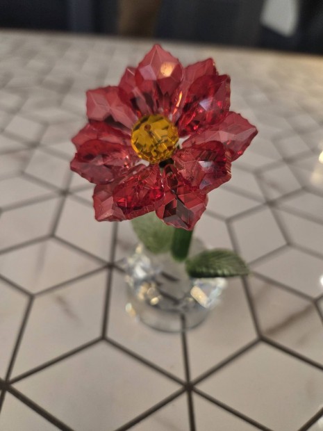 Kétnyakú Cseh üveg váza üveg virág díszítéssel