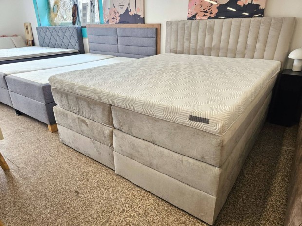 Ágyneműtartós bézs plüss boxspringágy 160x200 cm