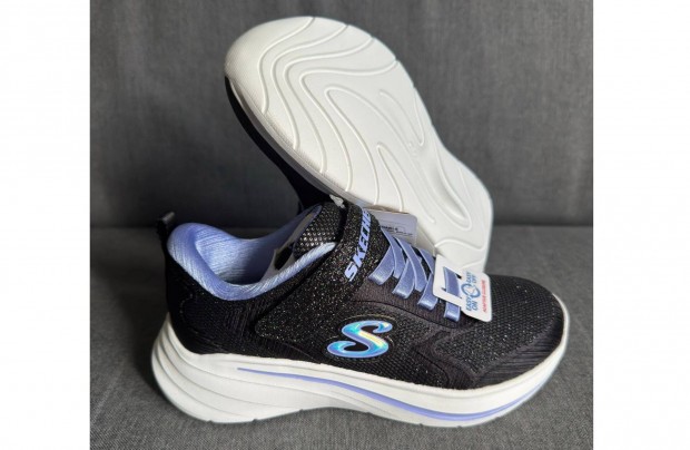 Új 30-as Skechers Wave 92 Gyerek Cipő Fekete Lila Lányka Csillámos