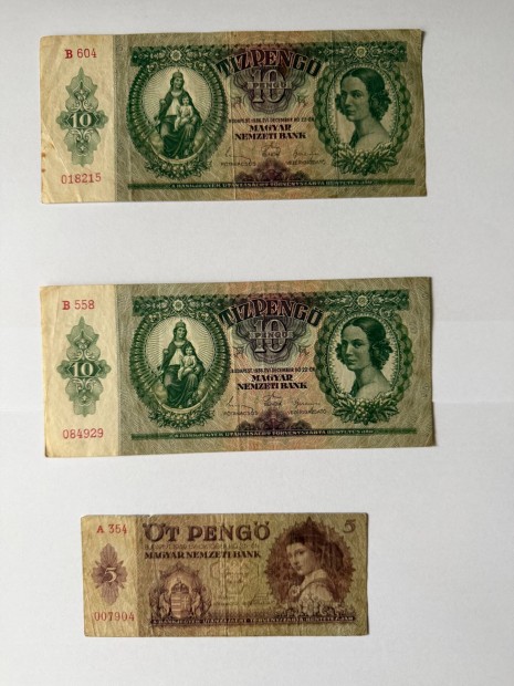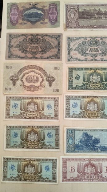 5, 10, 20, 500, 100 ezer, 1 millió Pengő, 1 millió B.-Pengő